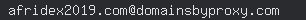whois lookup at whois.wildwestdomains.com...Domain Name: afridex2019.com Registry Domain ID: 2359803688_DOMAIN_COM-VRSN Registrar WHOIS Server: whois.wildwestdomains.com Registrar URL: http://www.wildwestdomains.com Updated Date: 2019-02-11T02:32:05Z Creation Date: 2019-02-11T02:32:05Z Registrar Registration Expiration Date: 2020-02-11T02:32:05Z Registrar: Wild West Domains, LLC Registrar IANA ID: 440 Registrar Abuse Contact Email:Registrar Abuse Contact Phone: +1.4806242505 Reseller: Microsoft Office 365 Domain Status: clientTransferProhibited http://www.icann.org/epp#clientTransferProhibited Domain Status: clientUpdateProhibited http://www.icann.org/epp#clientUpdateProhibited Domain Status: clientRenewProhibited http://www.icann.org/epp#clientRenewProhibited Domain Status: clientDeleteProhibited http://www.icann.org/epp#clientDeleteProhibited Registry Registrant ID: Not Available From Registry Registrant Name: Registration Private Registrant Organization: Domains By Proxy, LLC Registrant Street: DomainsByProxy.com Registrant Street: 14455 N. Hayden Road Registrant City: Scottsdale Registrant State/Province: Arizona Registrant Postal Code: 85260 Registrant Country: US Registrant Phone: +1.4806242599 Registrant Phone Ext: Registrant Fax: +1.4806242598 Registrant Fax Ext: Registrant Email: