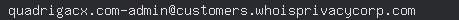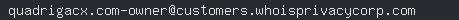 Name Server: ns13.v-sys.org Name Server: ns14.v-sys.org DNSSEC: unsigned URL of the ICANN WHOIS Data Problem Reporting System: https://www.icann.org/wicf/ >>> Last update of WHOIS database: 2021-04-24T12:19:37Z <<< For more information on Whois status codes, please visit https://icann.org/eppwhois lookup at whois.crsnic.net...Domain Name: QUADRIGACX.COM Registry Domain ID: 1827866554_DOMAIN_COM-VRSN Registrar WHOIS Server: whois.internet.bs Registrar URL: http://www.internet.bs Updated Date: 2021-04-15T19:25:52Z Creation Date: 2013-09-17T05:52:24Z Registry Expiry Date: 2021-09-17T05:52:24Z Registrar: Internet Domain Service BS Corp Registrar IANA ID: 2487 Registrar Abuse Contact Email: Registrar Abuse Contact Phone: Domain Status: ok https://icann.org/epp#ok Name Server: NS13.V-SYS.ORG Name Server: NS14.V-SYS.ORG DNSSEC: unsigned URL of the ICANN Whois Inaccuracy Complaint Form: https://www.icann.org/wicf/ >>> Last update of whois database: 2021-04-24T12:19:36Z <<< For more information on Whois status codes, please visit https://icann.org/epp NOTICE: The expiration date displayed in this record is the date the registrar's sponsorship of the domain name registration in the registry is currently set to expire. This date does not necessarily reflect the expiration date of the domain name registrant's agreement with the sponsoring registrar. Users may consult the sponsoring registrar's Whois database to view the registrar's reported date of expiration for this registration. TERMS OF USE: You are not authorized to access or query our Whois database through the use of electronic processes that are high-volume and automated except as reasonably necessary to register domain names or modify existing registrations; the Data in VeriSign Global Registry Services' ("VeriSign") Whois database is provided by VeriSign for information purposes only, and to assist persons in obtaining information about or related to a domain name registration record. VeriSign does not guarantee its accuracy. By submitting a Whois query, you agree to abide by the following terms of use: You agree that you may use this Data only for lawful purposes and that under no circumstances will you use this Data to: (1) allow, enable, or otherwise support the transmission of mass unsolicited, commercial advertising or solicitations via e-mail, telephone, or facsimile; or (2) enable high volume, automated, electronic processes that apply to VeriSign (or its computer systems). The compilation, repackaging, dissemination or other use of this Data is expressly prohibited without the prior written consent of VeriSign. You agree not to use electronic processes that are automated and high-volume to access or query the Whois database except as reasonably necessary to register domain names or modify existing registrations. VeriSign reserves the right to restrict your access to the Whois database in its sole discretion to ensure operational stability. VeriSign may restrict or terminate your access to the Whois database for failure to abide by these terms of use. VeriSign reserves the right to modify these terms at any time. The Registry database contains ONLY .COM, .NET, .EDU domains and Registrars.